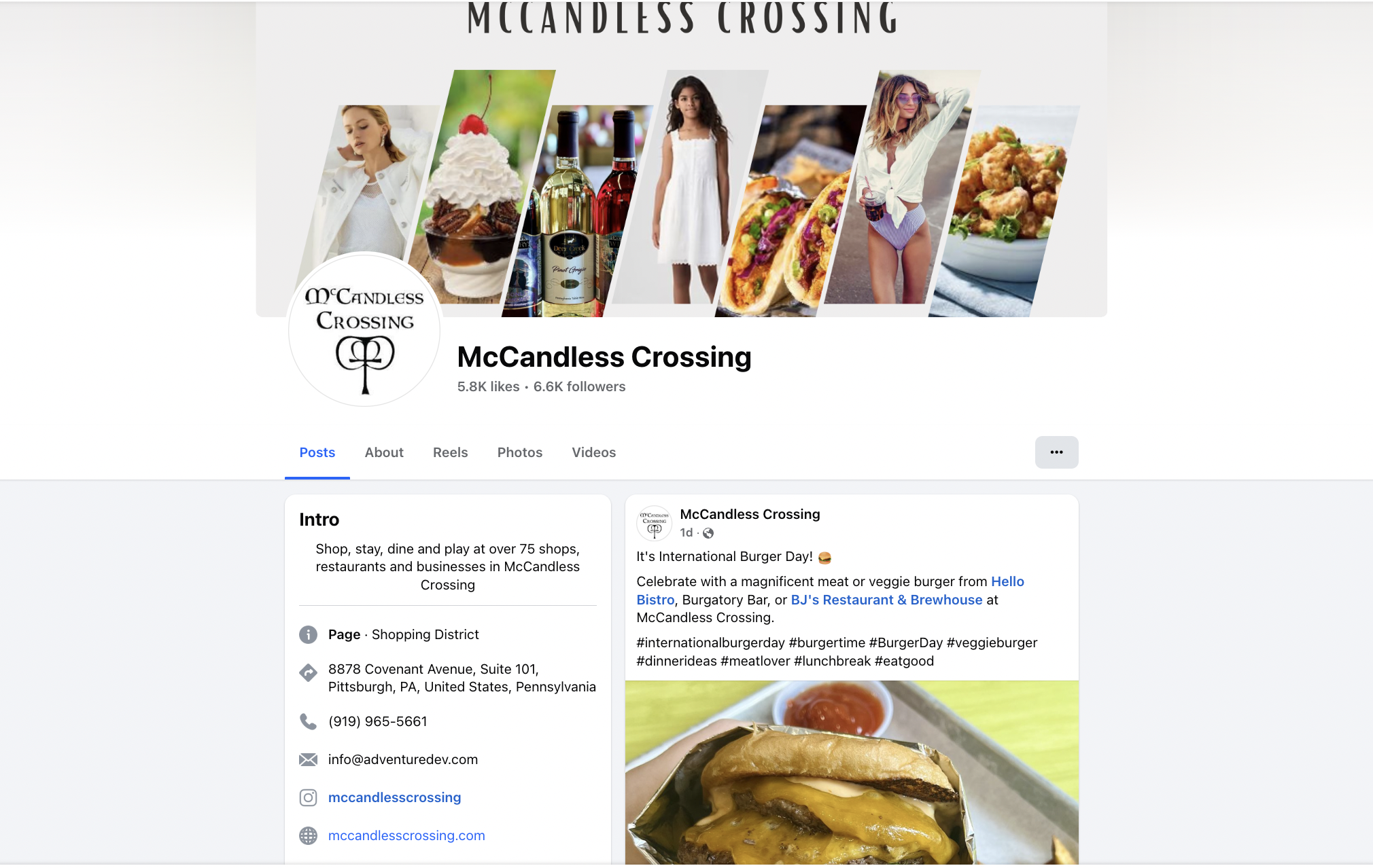 Using Meta Business Suite, I help manage the Instagram and Facebook accounts for McCandless Crossing, a shopping center in Western PA housing 70+ tenants.